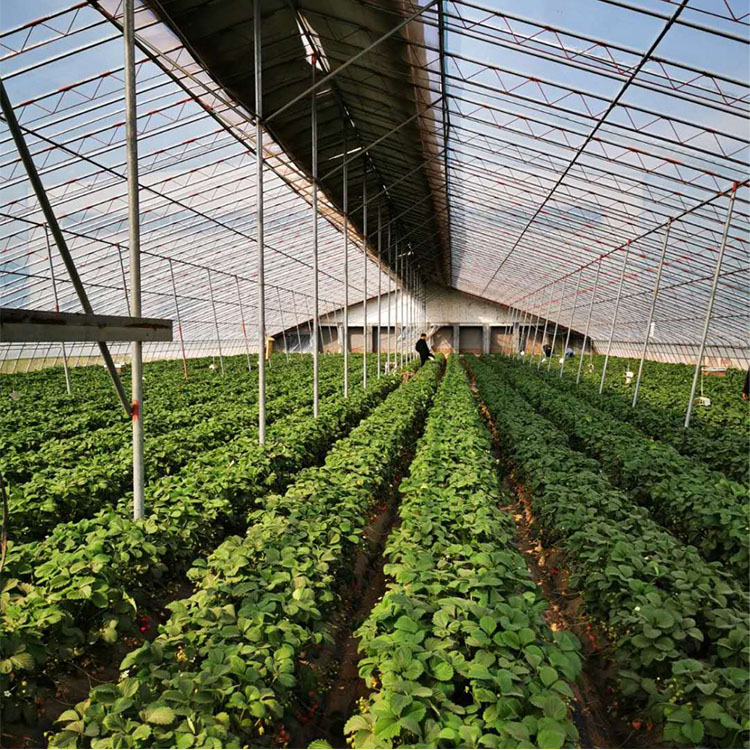 8月上中旬,選擇草莓匍匐莖上前期生長(zhǎng)的健壯小苗,移植到露地苗床或塑料缽中進(jìn)行育苗,要求育苗床土或缽?fù)帘K?、透氣性好,草莓移植后需覆蓋遮陽(yáng)網(wǎng)降溫。定植前對(duì)定植大棚內(nèi)土壤進(jìn)行耕翻。同時(shí)畝施腐熟廄肥3000~4000kg ,復(fù)合肥50~60kg 作基地,然后作畦,畦寬(連溝)1米,6米寬標(biāo)準(zhǔn)大棚可作6畦,畦溝深25~30cm 。9月中下旬選擇新葉正常開(kāi)展,小葉對(duì)稱(chēng),葉色濃綠葉柄粗,葉片大,長(zhǎng)勢(shì)健壯,豐產(chǎn)性好的幼苗進(jìn)行定植。