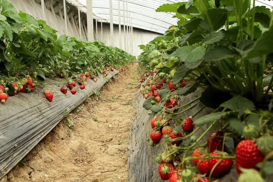 根據(jù)草莓生長(zhǎng)情況及時(shí)補(bǔ)充磷鉀肥及多元微量元素。整個(gè)生長(zhǎng)過(guò)程中要有充足的水分,開(kāi)花期土壤水分可稍干些,在草莓生長(zhǎng)旺盛期和漿果膨大期需水較多。灌水可結(jié)合施肥進(jìn)行,將肥溶于水中配成1000倍左右溶液施用。第二年開(kāi)春后隨著氣溫回升,生產(chǎn)速度加快,為避免草莓果實(shí)酸化,應(yīng)增施鉀肥,每畝施0.3%硫酸鉀5公斤左右。另外,在開(kāi)花前、幼果期、果實(shí)膨大期噴施“壯果蒂靈”+0.3%-0.5%尿素加0.3%磷酸二氫鉀液,株施尿素0.1-0.2公斤,補(bǔ)充果實(shí)生長(zhǎng)所需養(yǎng)分,提高灌漿質(zhì)量。