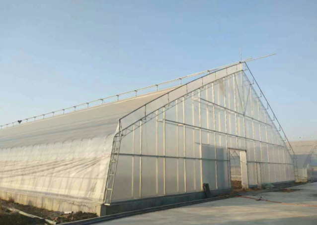 此種溫室大棚的走向?yàn)槟媳弊呦颍部梢哉f(shuō)是單體拱棚的加強(qiáng)版。此種溫室頂部可以加棉被,同時(shí)兩側(cè)跨度可以做到十二米甚至更多。此種溫室的優(yōu)點(diǎn)是土地利用率高,可以安裝自動(dòng)化的現(xiàn)代農(nóng)業(yè)設(shè)備。但是北方溫度低于零下十度的地區(qū),想要越冬生產(chǎn)還是要供暖。