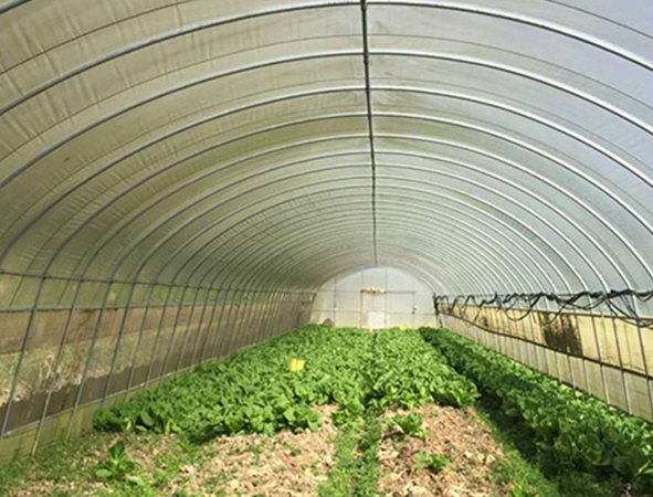 如果已經建成,可以在換膜時將前部適當下壓,增加拱度,以利通風;或在前部大約第三根鋼絲處掛上一層地膜,避免前部急劇變溫。當氣溫比較高時可以適當加大放風口的寬度來加大放風量。